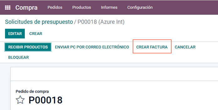 Crea la factura en el pedido de Compra