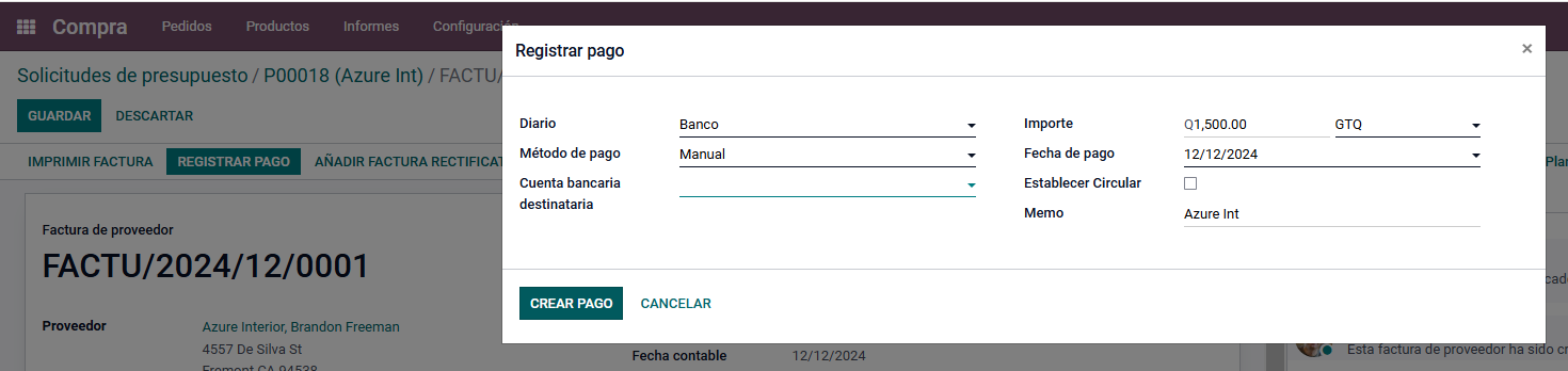Creación de pago de factura de compras